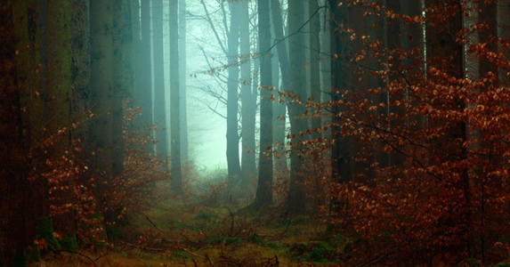 木叶萧萧,秋意渐深,几缕苍白的日光透过枝叶间隙射入幽暗的林子里。