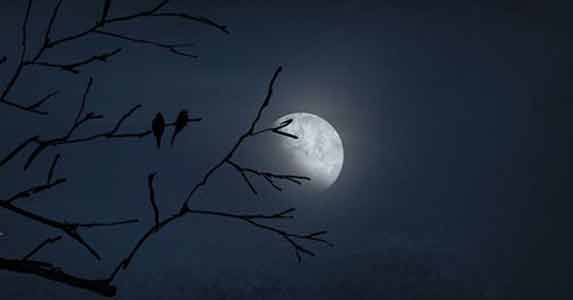 夜幕降临,月亮从河面上升起,洒下银色的光辉。